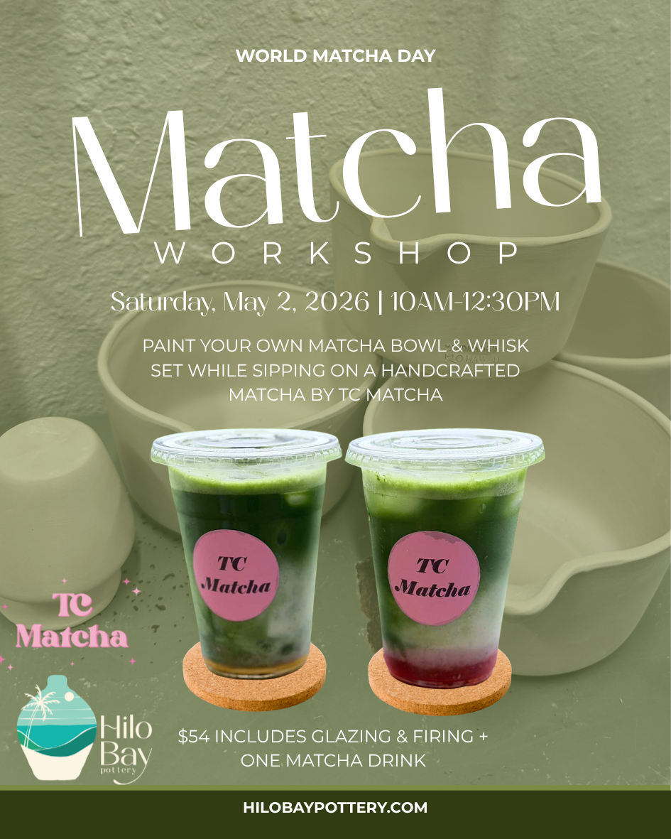 Your ticket includes all materials, glazing and firing of your pottery, and one handcrafted matcha drink.
